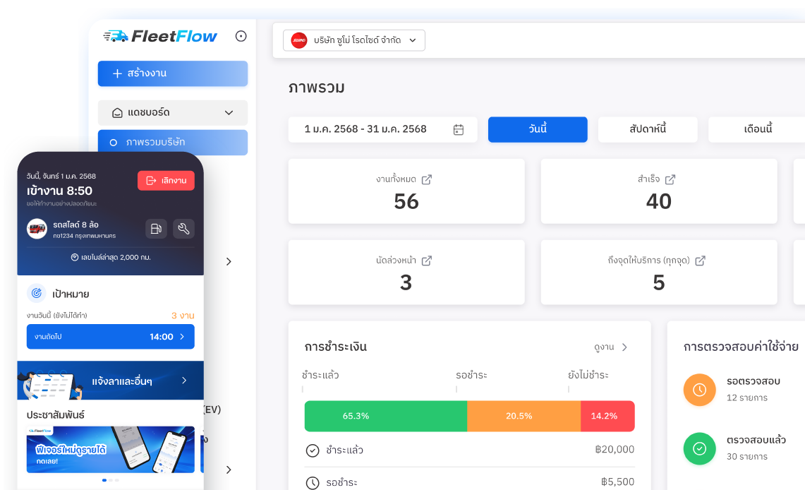 จัดการรถ คนขับ งาน และรายงาน—ง่ายขึ้นครบจบในแพลตฟอร์มเดียว